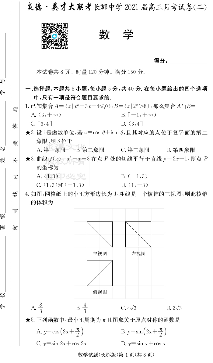 2026名師導學·高考總復習·小題量基礎周周考·數(shù)學