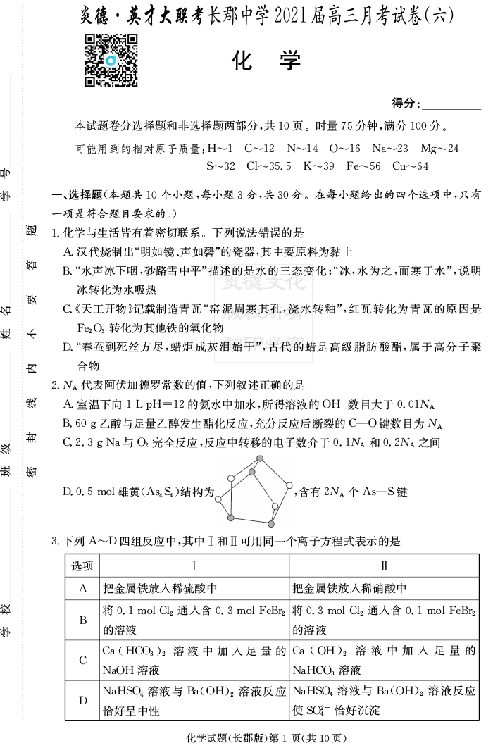 2026名師導學·高考總復習·小題量基礎周周考·化學