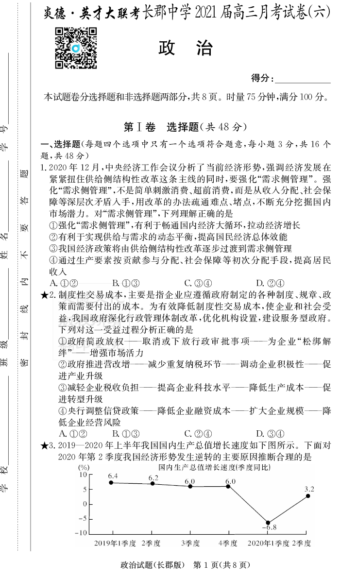 下一篇:【地理】炎德英才大聯(lián)考2021屆長(zhǎng)郡中學(xué)高三7次月考(十五校聯(lián)考一)