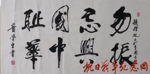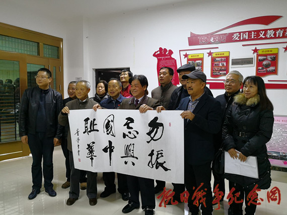 長(zhǎng)沙市關(guān)工委主任董學(xué)生為抗日戰(zhàn)爭(zhēng)圖書(shū)館題字(前排左起:唐得之、董學(xué)生、何譽(yù)軍)