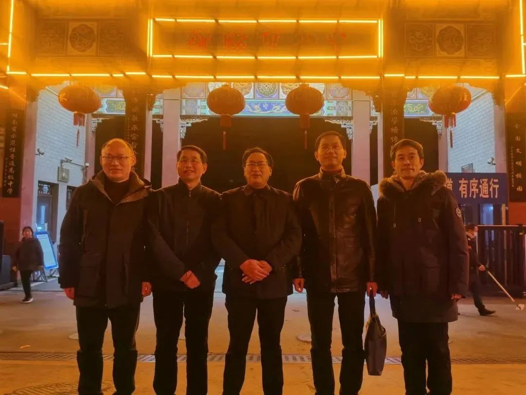 ▲岳陽市一中校長何波(右二)、岳陽縣一中校長續(xù)鵬飛(左二)、我校黨委書記寧中平(中)